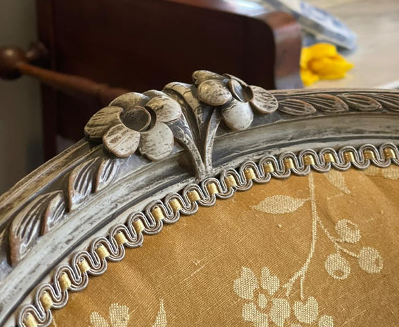 This bergère dates back to the end of the 19th century and is very unique because of its extra fith leg in front. In any room of your home it will bring its elegance and the brightness of its fabric.